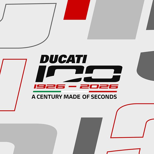 Data 1926–2026 označují interval mezi zrodem Ducati a dneškem, naší nejzářivější současností.