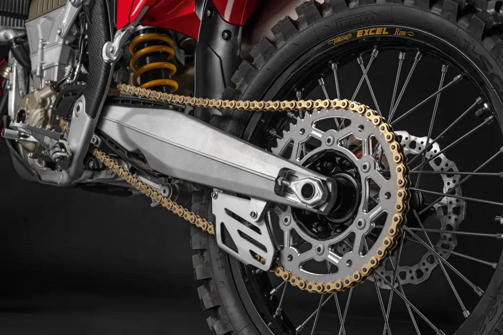 • řetěz RK 520, těsnící kroužek UW-Ring (technologie UW-ring minimalizuje tření mezi články, čímž prodlužuje životnost řetězu a zlepšuje plynulost chodu), 120 článků